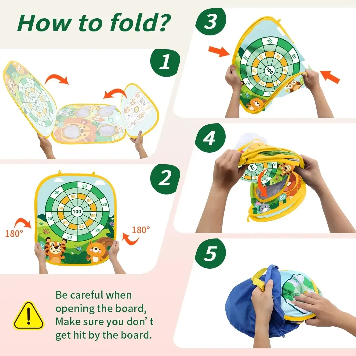 Con tres emocionantes juegos en uno —Lanzamiento de Saquitos, Lanzamiento de Pelotas Pegajosas y Tres en Raya—, este set desarrolla la coordinación ojo-mano, las habilidades de movimiento y la competencia lúdica de la forma más segura y divertida. Ligero, portátil y fácil de armar, es perfecto para cumpleaños, reuniones de juegos, fiestas y para la diversión diaria.